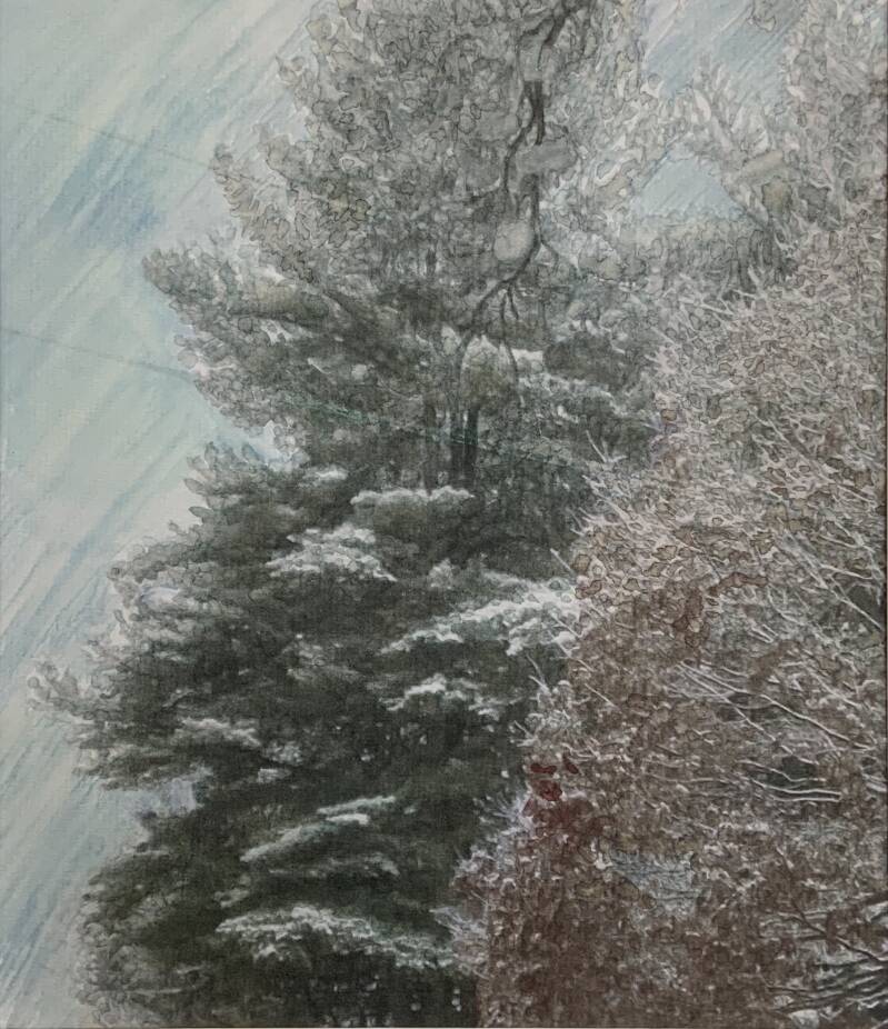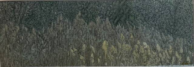 A single, bright and colorful tree stands out in the middle of the cold forest. The light illuminates the leaves, making it stand out among the rest. The light is the spirit shining on this tree, and you, the light at the beginning is you. Let it shine and stand out among the rest of the trees. I took this photo while thinking about my daughter, who definitely stands out among the crowd with her inner light. 16x20 in. Pastel manipulated photography on watercolor paper. Photograph taken in French Creek Pennsylvania.