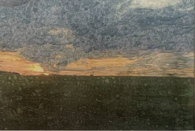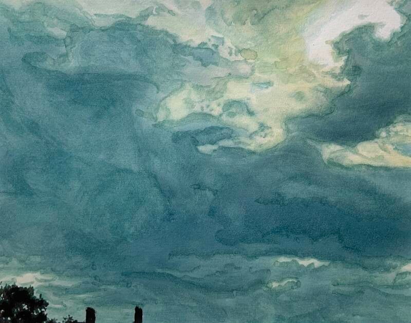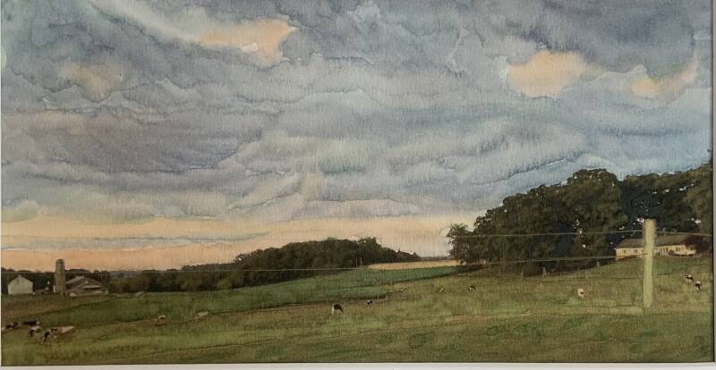 We are in uncertain times with lots of termoil, much like the sky before a storm. Slow down to see the beauty and direction in this experience. Painted photograph using watercolors. Photograph taken in Cochranville Pennsylvania.